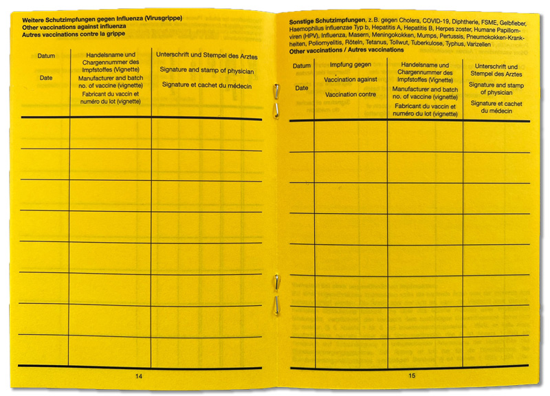 Das Impfbuch besitzt internationale und lebenslange Gültigkeit. Wichtiges Reisedokument weltweit.