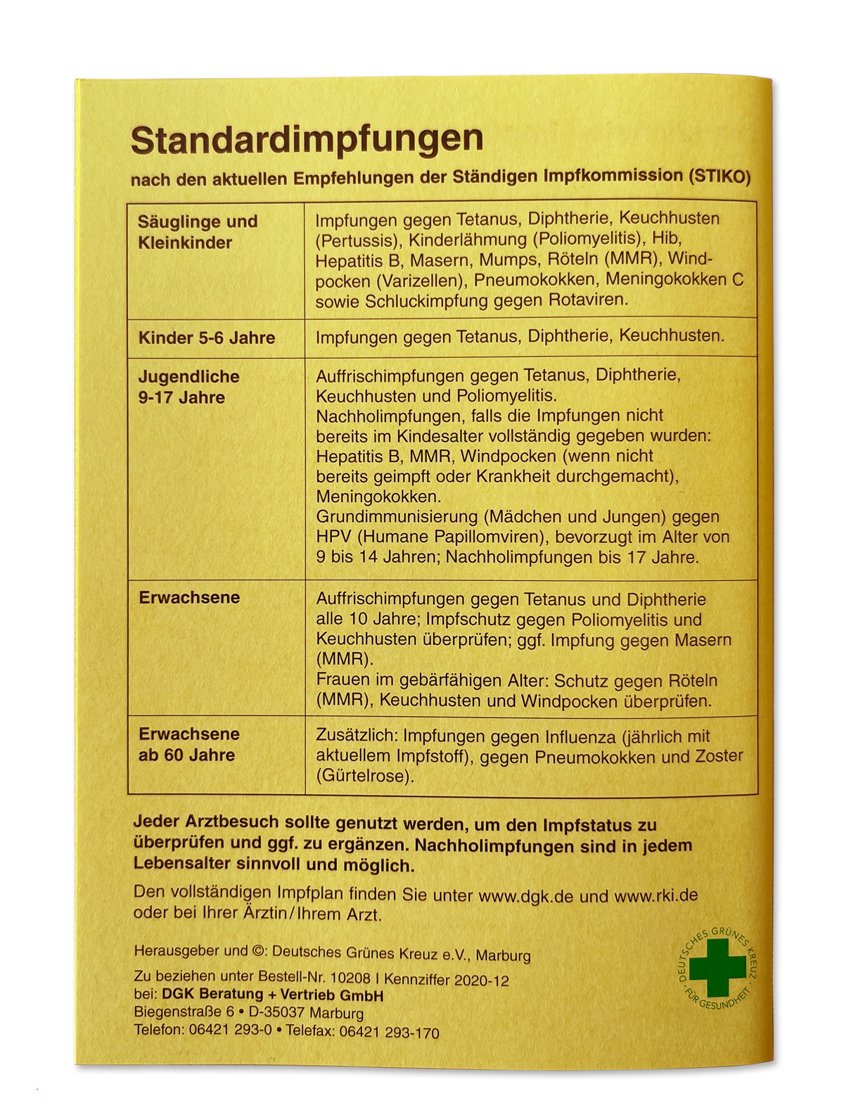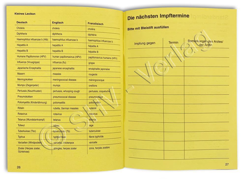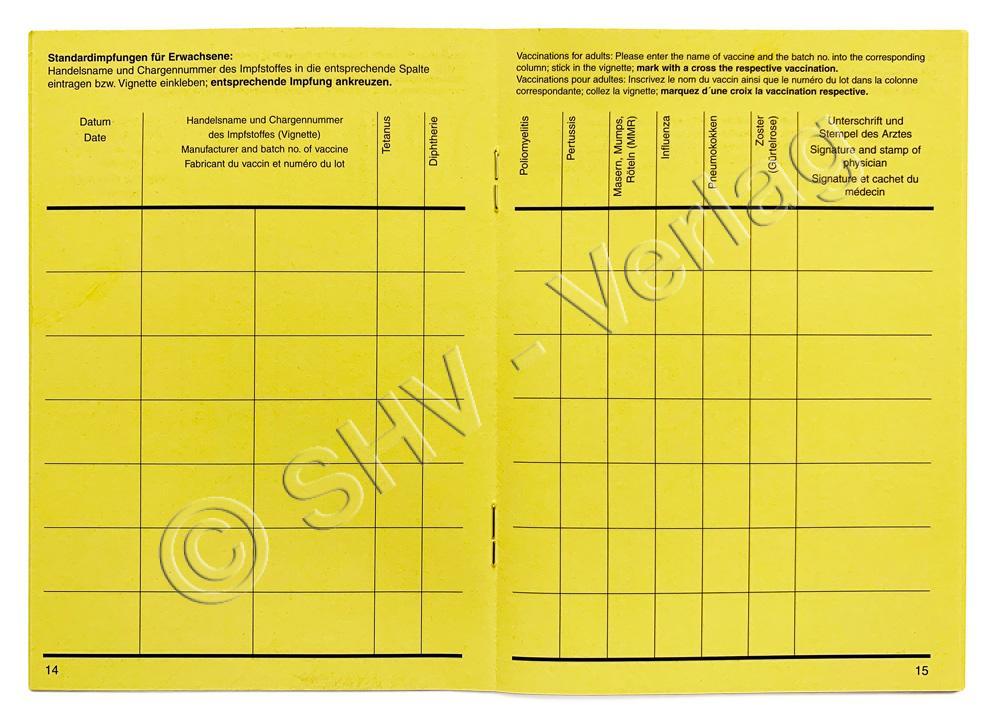 Der internationale Impfausweis dient als Nachweis für erhaltene Impfungen. Mithilfe dieses Ausweises werden fällige Impfungen ersichtlich.